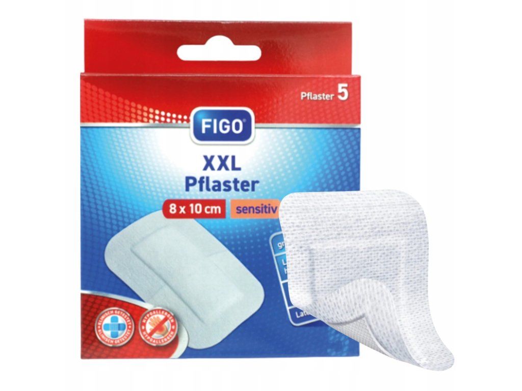Náplast velká, XXL 8x10 cm, prodyšná, na citlivou a jemnou pokožku, 5 ks